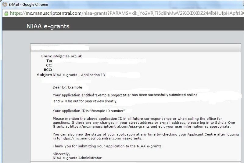 All applications that are successfully submitted are acknowledged by an automated email. Please check you receive this email once you have uploaded your application. It should look like this (click to enlarge):