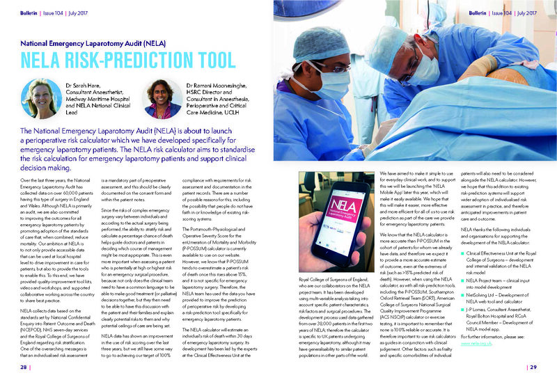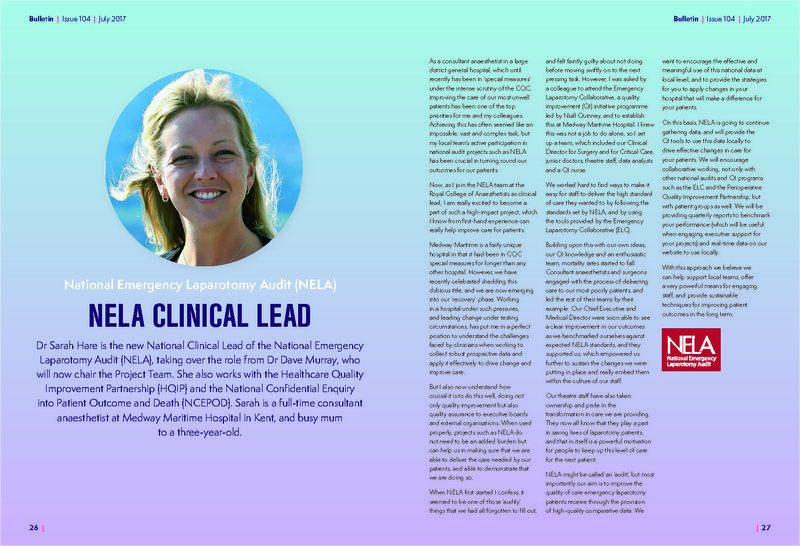 Two articles relating to the National Emergency Laparotomy Audit have been published in the July 2017 edition of the RCoA Bulletin.