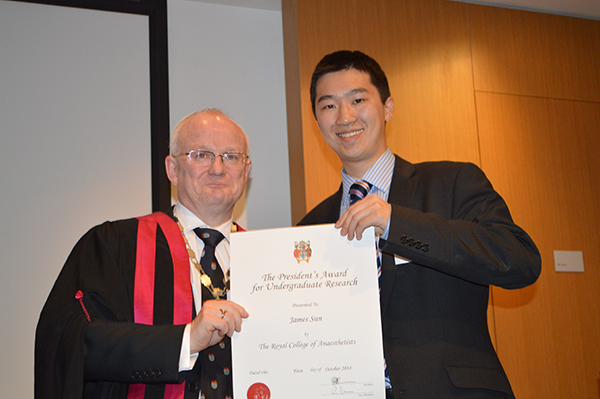 The President's Award for Undergraduate Research is awarded at the Anaesthetic Research Society Winter Meeting and presented by the President of the RCoA. Details of previous winners can be found below.
